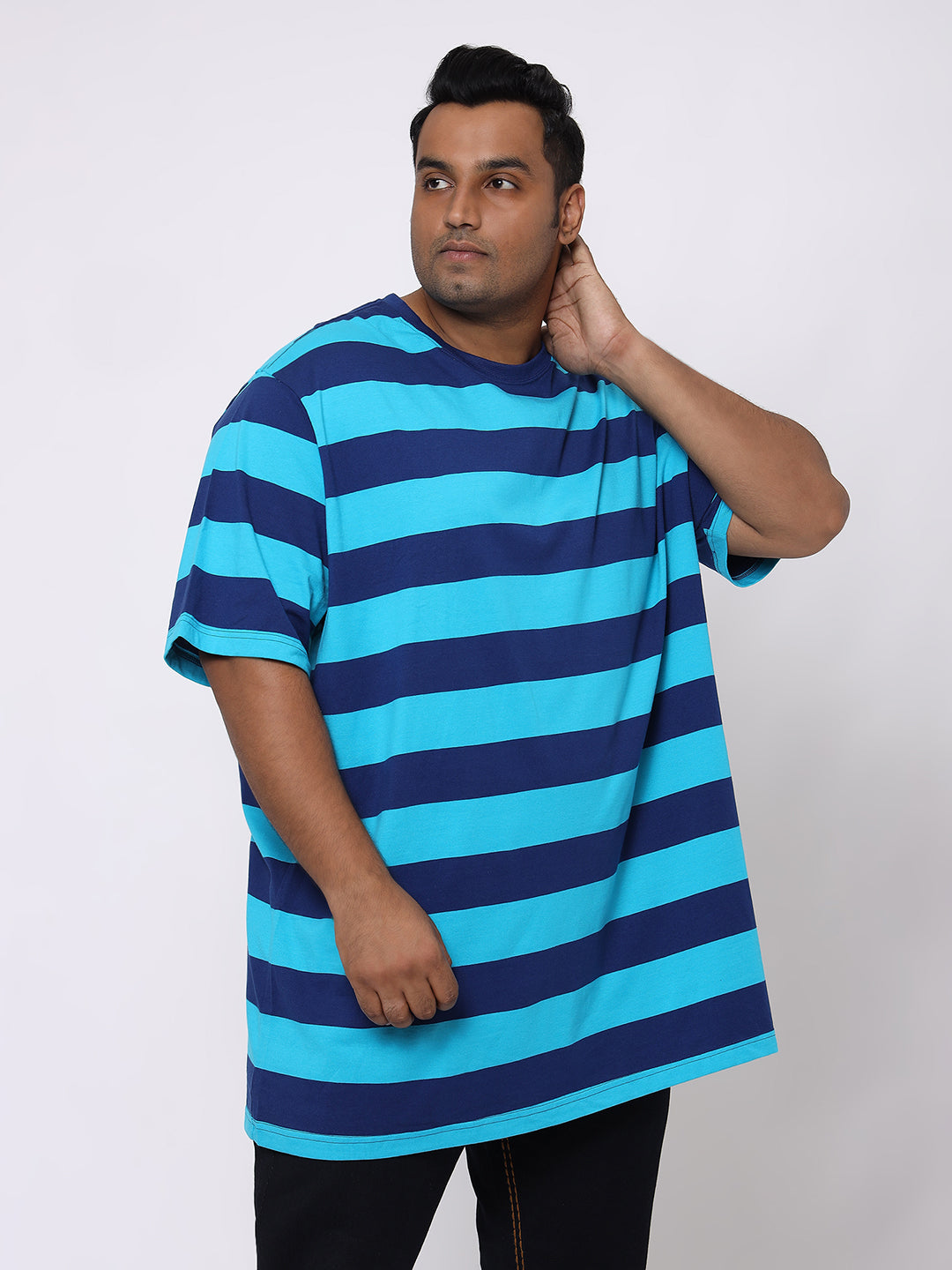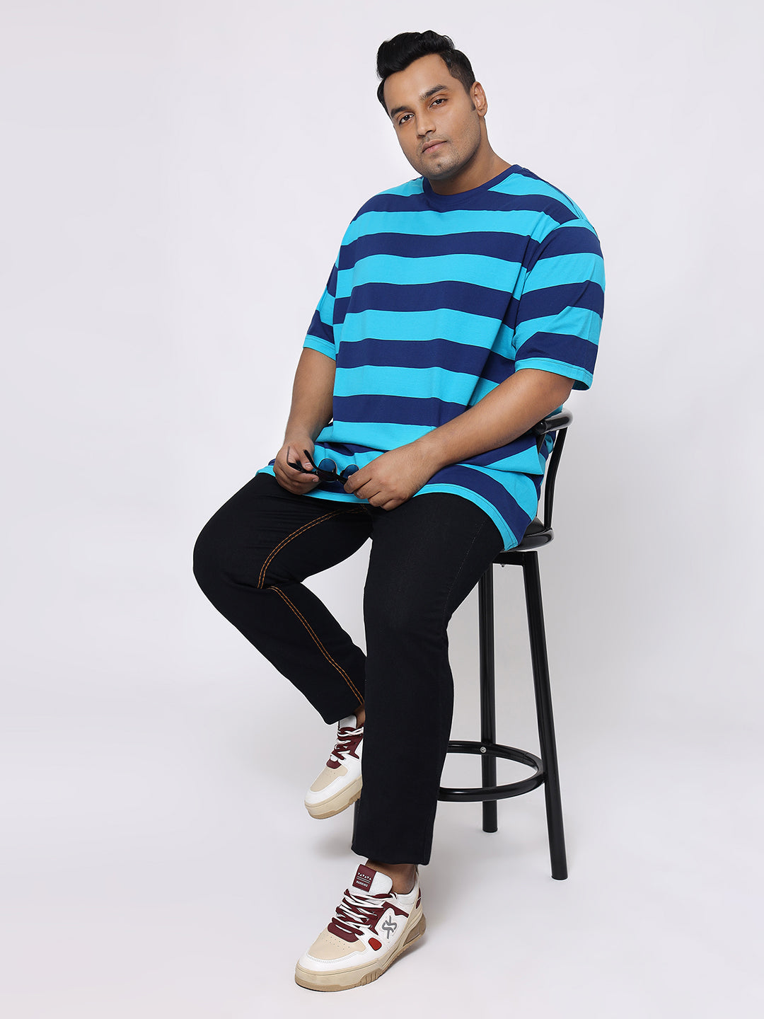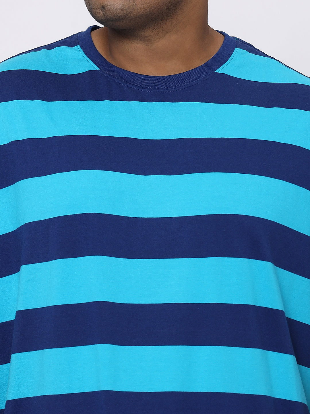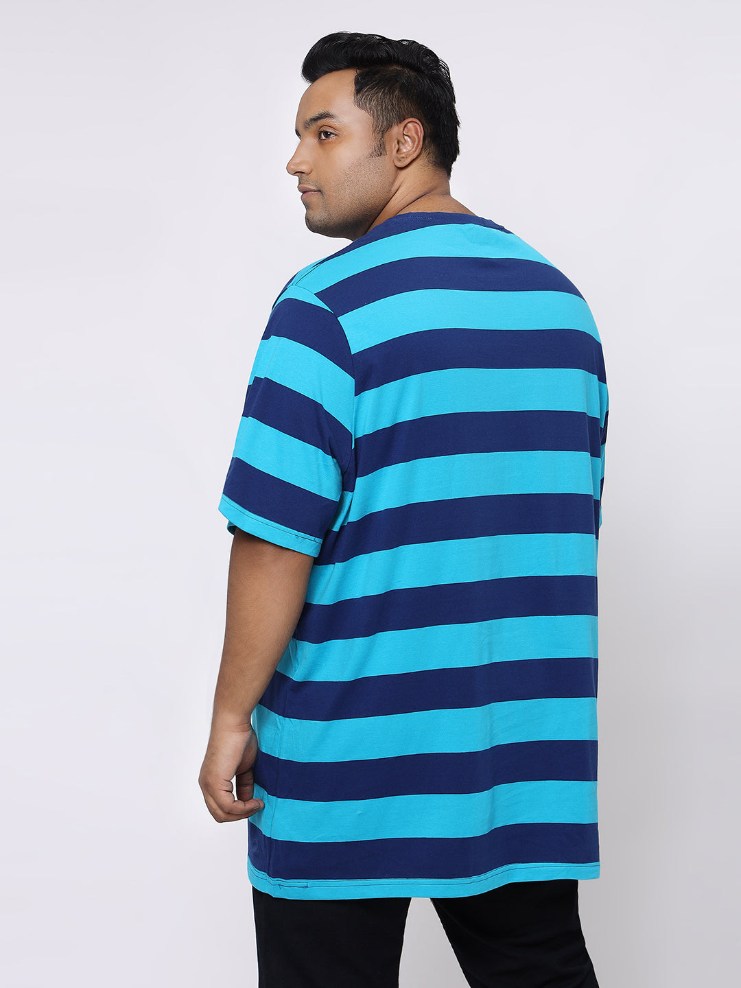 This stylish blue striped T-shirt blends comfort with casual flair. Made with breathable bio-washed cotton, it offers a soft feel and long-lasting wear. The multi-color horizontal stripes add a bold, contemporary look — perfect for casual days or weekend outings.