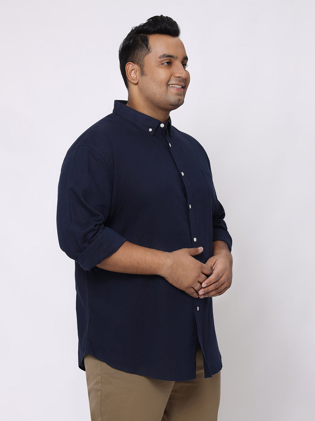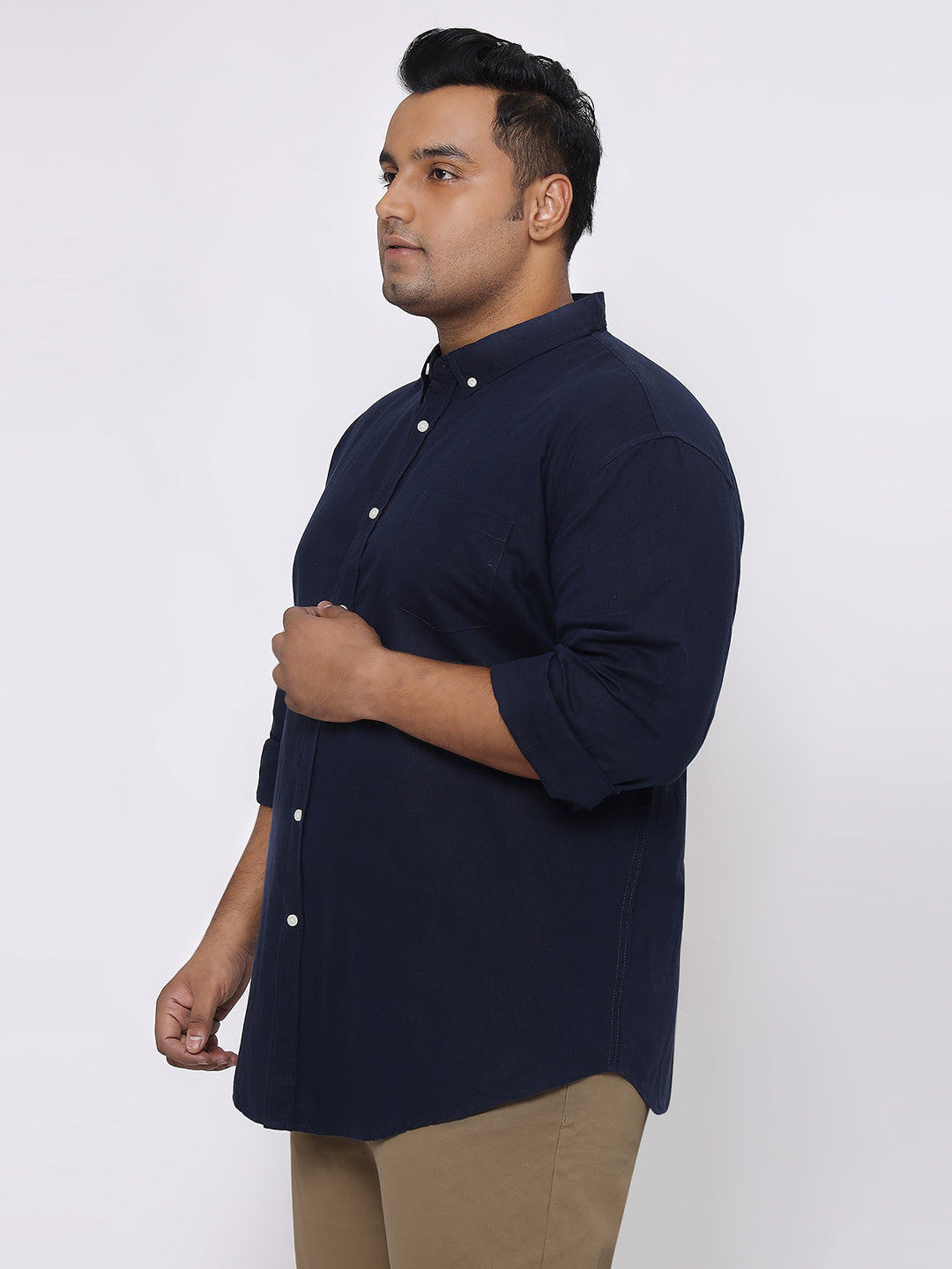 Upgrade your everyday style with this classic navy blue linen shirt. Made from breathable linen fabric, it feels light and comfortable, making it perfect for all-day wear. The clean button-down design and solid color give it a smart and timeless look. Easy to pair with jeans or trousers, this shirt is ideal for casual outings as well as semi-formal occasions.