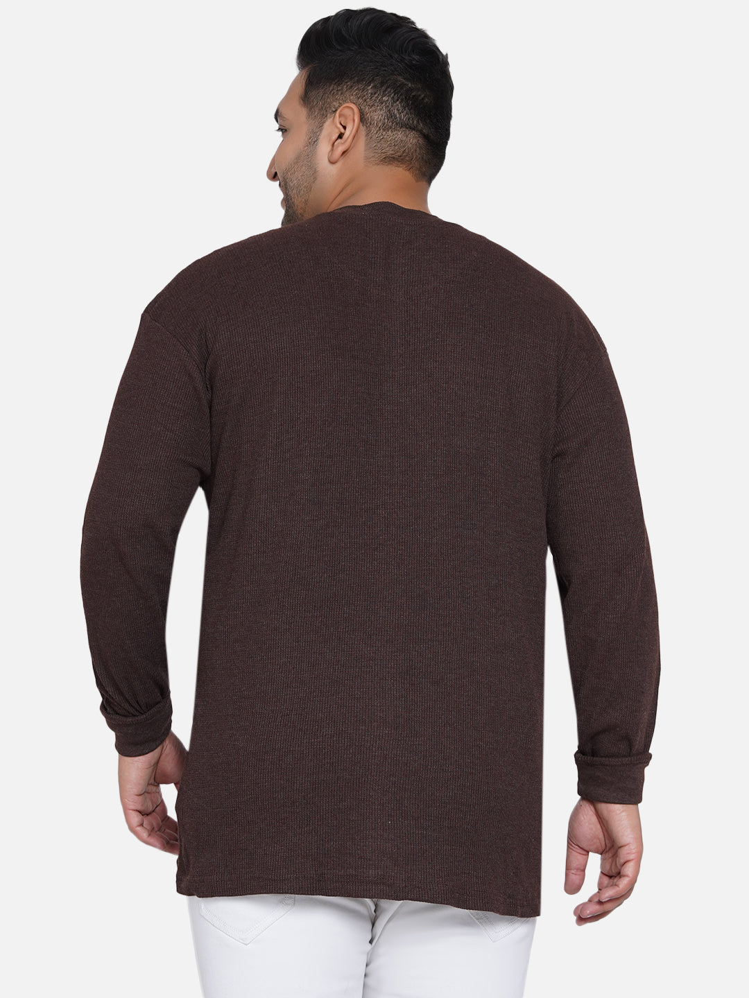 Seven - Men Brown Plus Size Regular Fit Solid Full Sleeve T-Shirt