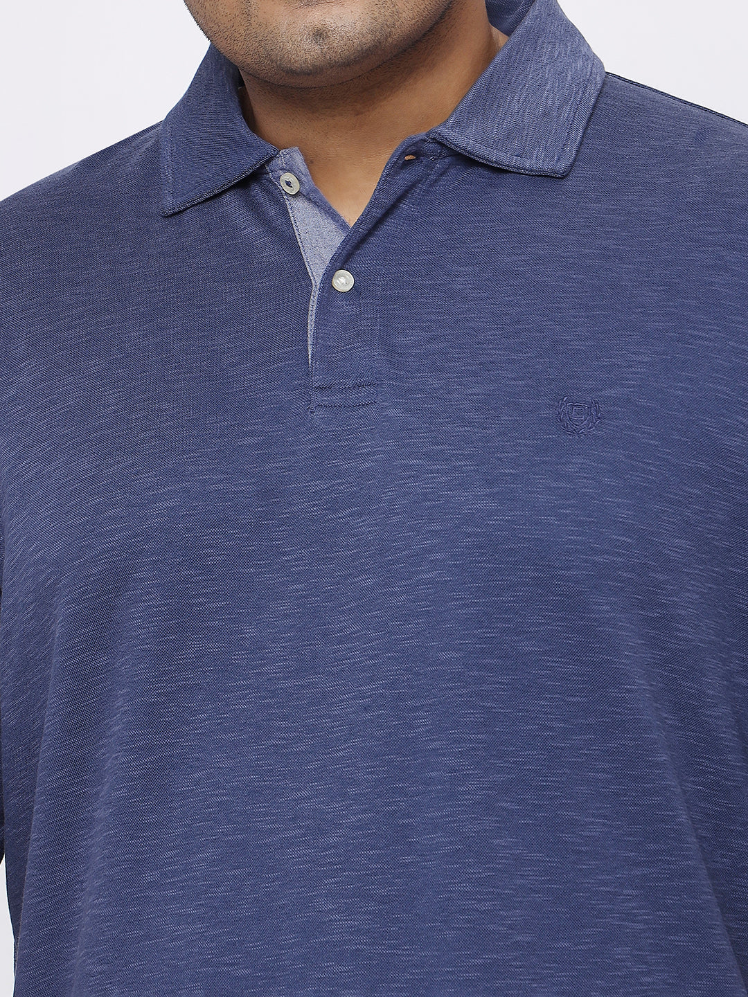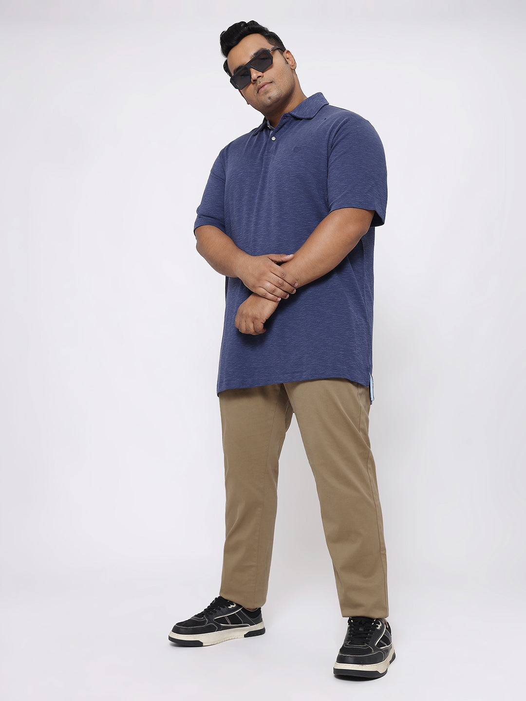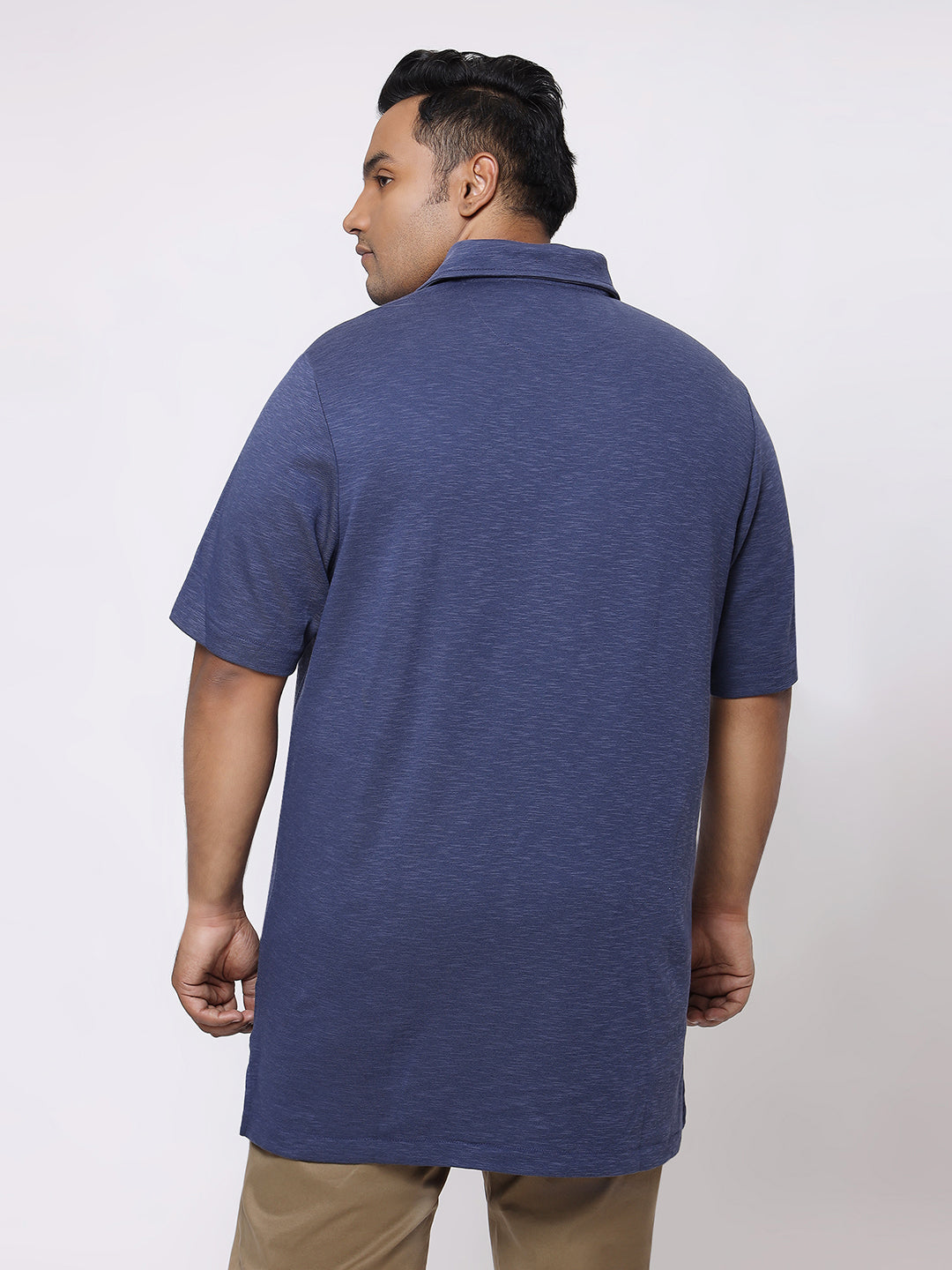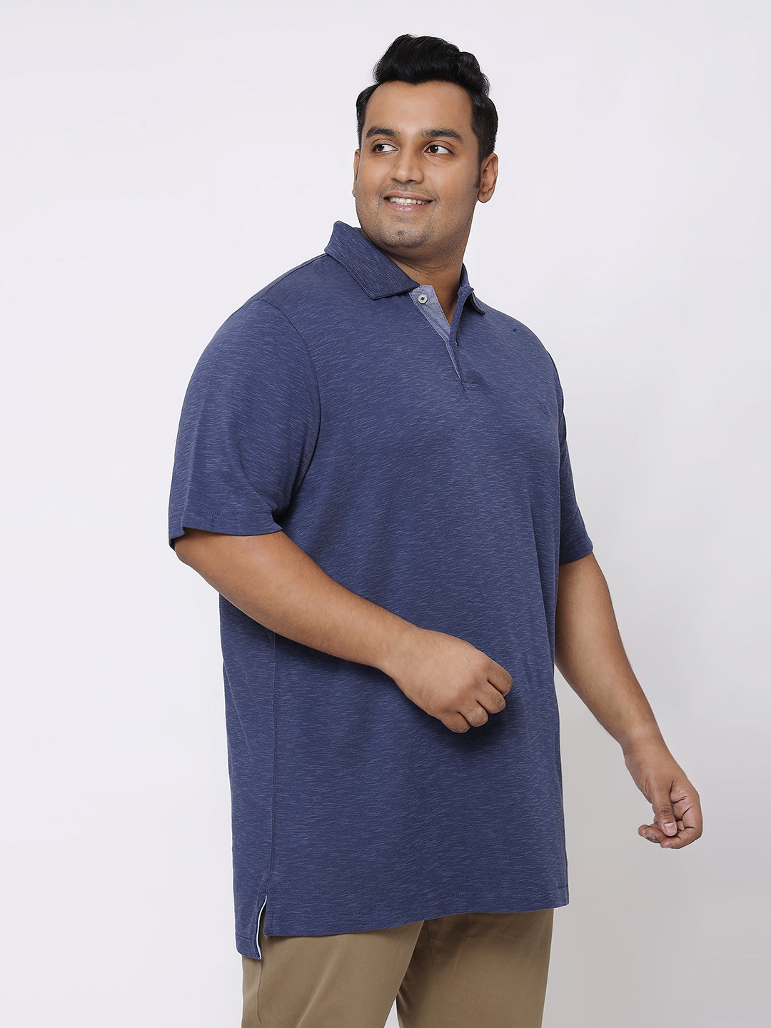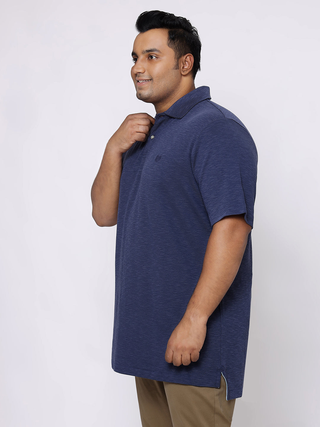 Santonio - Plus Size Men's Regular Fit Navy Blue Solid Cotton Half Sleeve Polo Neck T-Shirt